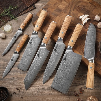 יוקרה מותאם אישית באיכות גבוהה סכיני סכין יפנית חדשה להגדיר damonsonives מטבח פלדה עם ידית עץ